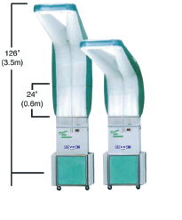 Mobile Absaugung mit Plenum für Staub und Lack. Ausgestattet  mit 4 Filtern(Vorfilter, Kasettenfilter,  Aktivkohlefilter und Taschenfilter). Die Luft wird über Umluft  umgewältzt (5200 m³ pro Stunde). 93% werden nach oben abgegeben und 7%  Über das Plenum nach unten.Der große Vorteil  ist daß keine kalte Luft von aussen  angezogen wird. Der Staub und  geringfügig auch Lösemittel in der Werkstattluft werden gefiltert!